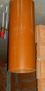 - das Schachtrohr / Wäscheabwurf-Rohr im Keller in einer empfohlenen Höhe von ca.