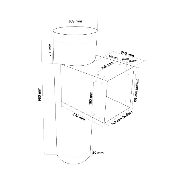 Türschurrenrohr Edelstahl Ø 300/250 mm für Wäscheschacht-Einwurftüren (seitlicher