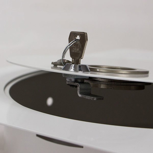 weiß pulverbeschichtet (ähnlich RAL 9016), mit Schloß