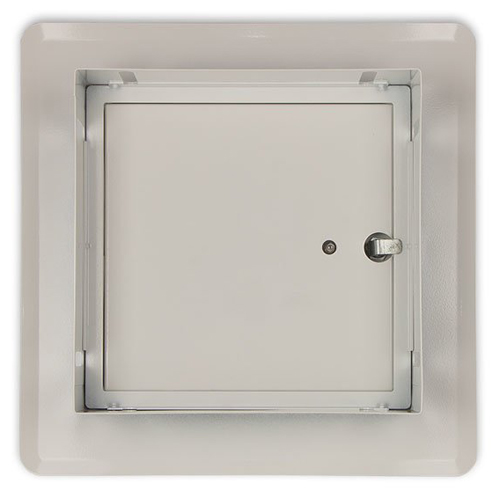 Wäscheeinwurftür NewStyle für den seitlichen Einwurf, weiß pulverbeschichtet (RAL 9016), mit Schloss und runder Griffmulde