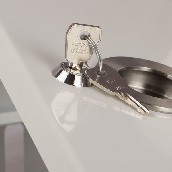 - Mit runder Edelstahl-Griffmulde und Schloss mit 2 Schlüsseln