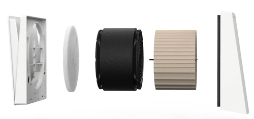 Innenblende, Außenblende, Lüftungseinheit, Filtereinheit und Wärmetauscher